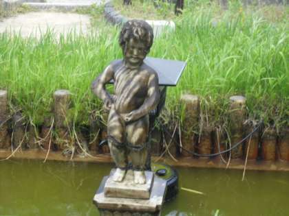 高圧洗浄機を使うと,小便小僧の汚れが・・・。