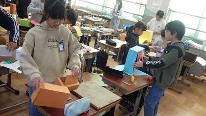 4年生は、図工の「おもしろだんボールボックス」の作品づくりをしています。