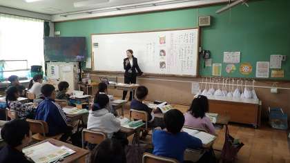 4年生は、道徳の「ブルラッシュ」のお話から、仲良くなろうと遊びを提案する「ぼく」やジェームスの思いを考えたり、他国の遊びを知ったりすることを通して、他国の文化に興味を持ち、親しんでいこうとすることの大切さについて考えました。日本と外国の遊びには似たものがたくさんあることを知り、世界の国についてもっと知りたいという意欲につながりました。
