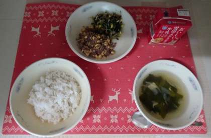 「ビビンバ」は、韓国・朝鮮の料理です。ごはんに、肉や卵、ナムルなどの具をのせて混ぜて食べます。「ビビン(ピビン)」は「混ぜる」、「バ(バプ)」は「ごはん」という意味です。たくさんの具が混ざった味を楽しみながら、ごはんと一緒においしくいただきました。