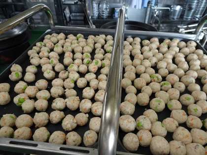 「がんもどきのあんかけ」は、水気を切った豆腐に、とりひき肉、にんじん、枝豆、しいたけ、おからパウダーをまぜ合わせて丸め、油で揚げてつくった「がんもどき」に、だしの効いた「あん」をかけていただきます。「がんもどき」は給食調理員さんの手作りで、梅津小学校の子どもたちのために、2500個以上のがんもどきをつくってくださいました!