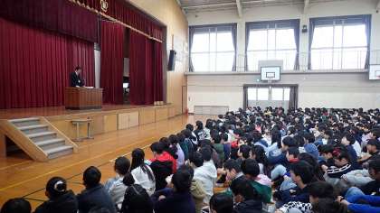 さらに、明日からの冬休みを有意義に過ごすために、体調に気をつけ、規則正しい生活リズムで過ごし、時間をうまく使って学習や遊び、家族の一員として仕事や手伝いをがんばりましょう、ともお話しくださいました。
