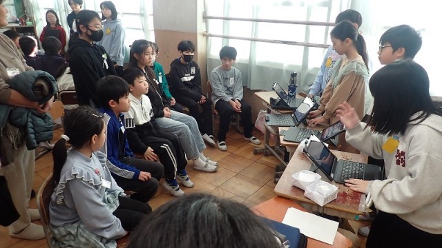 グループ発表を聞くのは、同じ5年生の子どもたちと6年生、参観に来てくださった保護者のみなさんです。