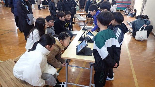 子どもたちが調べたテーマは、「梅津の史跡」「梅津の自然」「構口公園」「製紙工場」「小学校の歴史」など様々です。同じものに関心をもった子どもたち同士でグループをつくり、梅津の歴史をまとめた本を読んだり、実際に地域の方にお話を伺ったりして調べ学習を進めてきました。その中で自分たちもはじめて知って驚いたことや、興味をもったことを中心に発表のプレゼンをつくりました。見る人に興味をもってもらえるように、クイズ形式を取り入れるなどの工夫もあります。