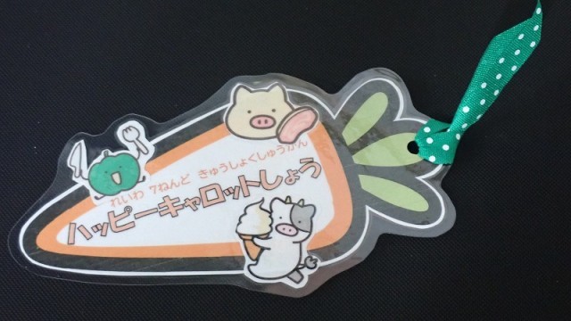 昨日の「じゃがいものクリームシチュー」に入っていた「ハッピーキャロット」が当たった子どもには、今日の給食時間に栄養教諭の先生から「ハッピーキャロット賞」としてかわいい栞のプレゼントがありました。栞をもらった子どもたちはみんなうれしそうにしていました。