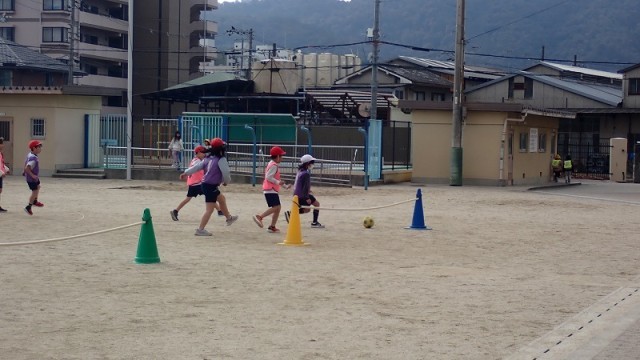 パスをつないだり、ボールをドリブルしたりしてゴールをめざしています。ゴールをねらえるときには積極的にシュートにチャレンジしています。運動場は、3年生の元気な声でいっぱいです。