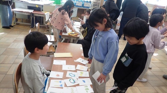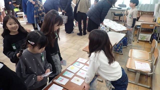 子どもたちは、「お店屋さん」「お客さん」に分かれて、お店屋さんごっこを楽しみました。やり取りも何度かくり返すうちにどんどん上手になっていきました。授業参観だったので、保護者の方にもお客さんとしてお店屋さんごっこに参加してもらい、子どもたちも大張り切りでがんばっていました。授業参観にお越しいただいた保護者のみなさま、お忙しい中ありがとうございました。