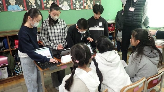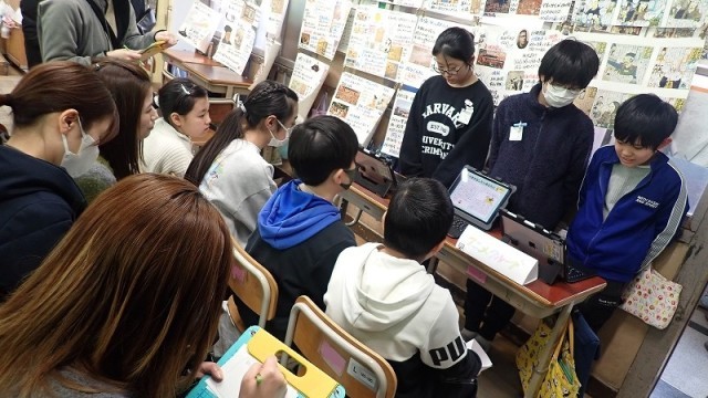 子どもたちは、どんなものを推薦したいかを話し合い、「本」「音楽」「スポーツ」などグループごとのテーマを決めました。そのテーマの中でひとりひとりがおすすめを紹介するデジタルパンフレットをつくりました。今日は、その発表会を開き、参観に来られた保護者の方にも聞いていただきました。