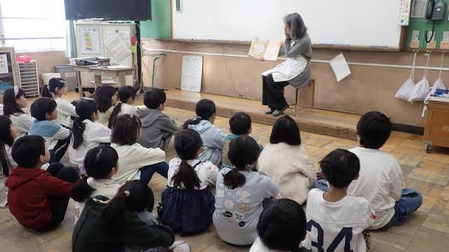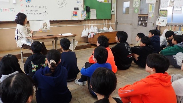 今日は、2年生と6年生の教室に来てくださいました。どちらのクラスでも、子どもたちは集中してお話を聞いていました。6年生のクラスでは、卒業を迎える6年生への思いを込めて読み語りをしてくださいました。今日読んでくださったのは「100万回生きたねこ」です。自分のことだけが大好きだったオスねこが白ねことの出会いと別れで自分より大切なものへの愛情を知るお話です。読み語りが終わった後、子どもたちに感想をたずねられましたが、子どもたちは「残酷」とか「悲しい」とかではないうまく説明できない気持ちをもっているようでした。素敵な読み語りをしていただき、ありがとうございました。