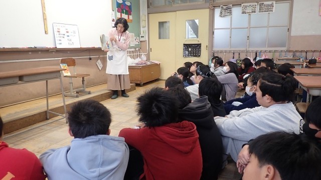 今日は、むくのき学級と6年生の教室に来てくださいました。どちらの教室でも、読んでくださる本にぐっと集中してお話を聞いていました。2月の読み語りは今日で最終回でした。今年度の読み語りも、残すところ3月のあと1回です。