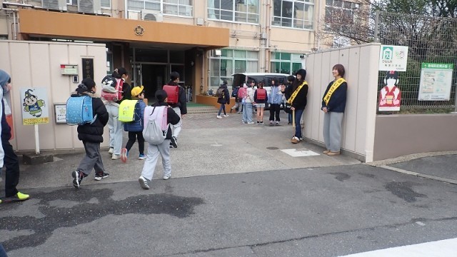 地域委員をしていただいている保護者の方が来てくださり、正門と西門であいさつをしてくださいました。1か月前とは打って変わってあたたかい朝で、少しずつ春が近づいているのを感じることができました。来週からは3月、登校するのも残り15日ほどです。