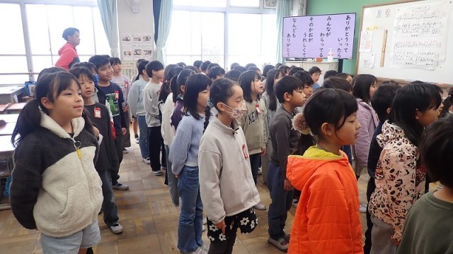 2年生は、来週の「6年生を送る会」の練習をしています。