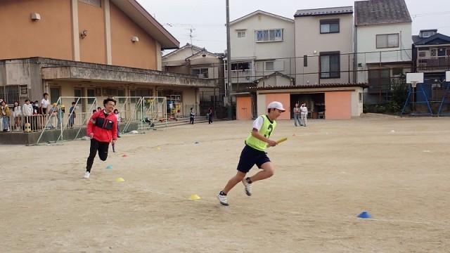 陸上部のお別れ試合では、4・5・6年生の3チームと先生チームの4チームでリレーをしました。「11歳と55歳の運動の力が同じくらい」だと言われることもあるそうですが、この説を信じるなら、先生チームは圧勝です。梅津小学校では20代・30代の先生が多く(40代と50代もちょっぴりいますが)、大人の威厳も併せもつ先生チームが負ける理由はありません。なかったはずでした…。