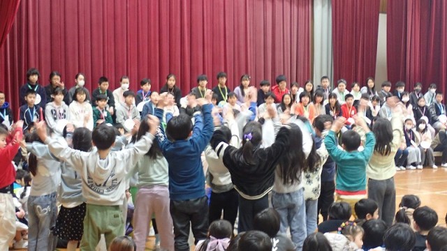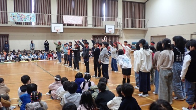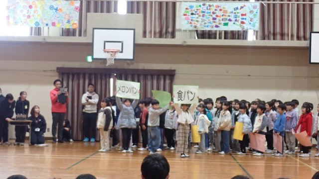 6年生が入場した後は、6年生に各学年からの出し物を贈りました。出し物は、歌やクイズなどで、6年生への感謝のメッセージやエールが込められていました。