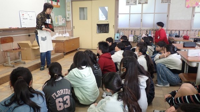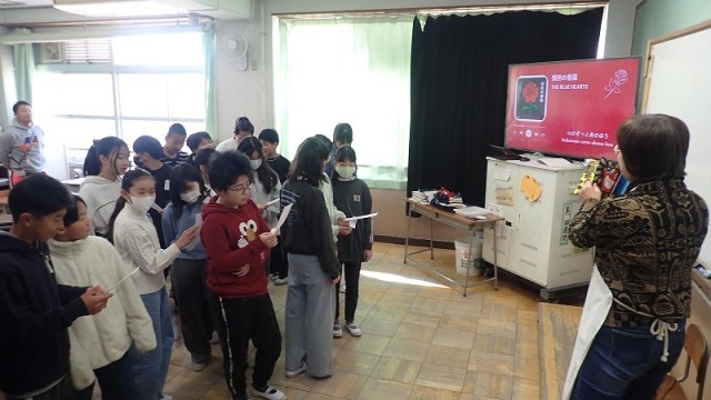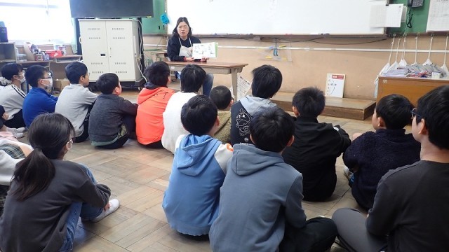 今日は、4年生と6年生の教室で読み語りをしてくださいました。6年生の教室では、担任の先生が選んだ「中学生になるあなたへ」として選んだ本を読み語りしてくださいました。読んでくださったのは、1組では「情熱の薔薇」、2組では「たくさんのドア」です。「情熱の薔薇」は、THE BLUE HEARTSの曲で、読み語りのあと、担任の先生が用意してくださった音楽に合わせて、クラスみんなで歌いました。ちょっと変わった読み語りの時間になりましたが、子どもたちにとっては印象深い時間になったのではないかと思います。