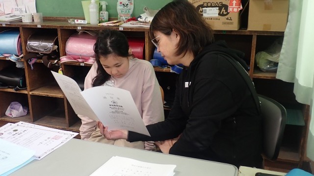 6年生の教室では、6年生の「修了証(通知票)」を渡していました。
