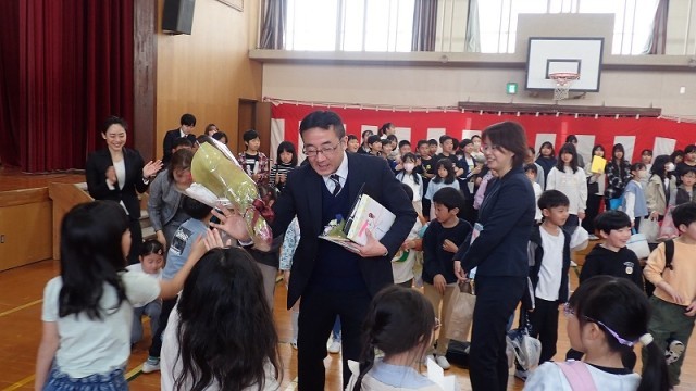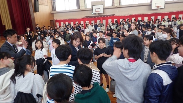 最後に、みんなで花道をつくり、離任される教職員のみなさんを「ありがとうの花」と拍手でお見送りしました。