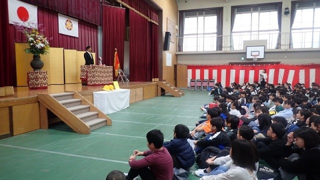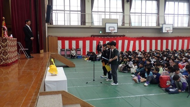 はじめに、令和8年度の着任式を行いました。はじめに、新しくお迎えする校長先生の着任式を行いました。校長先生からのお話では、校長先生が体を動かすことが得意なことや、特にサッカーがお好きなことを聞き、子どもたちも思わず驚きの声を漏らしていました。校長先生と一緒に運動場で遊ぶことができるかもしれませんね!