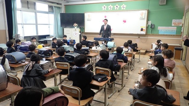 入学式が終わった後は、写真撮影をしてから教室に戻り、担任の先生のお話を聞きました。