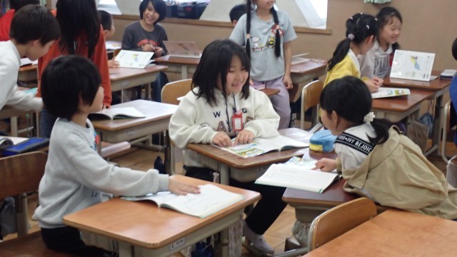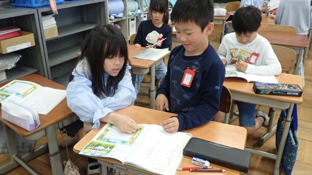 今日は、九九の表を使って、2年生の学習のふり返りをしていました。カードを置いて隠した部分の数字が何かを素早く答えます。九九の表は、横に見ると段の数ずつ数字が変わっていきます。それをヒントにして、答えを出していました。