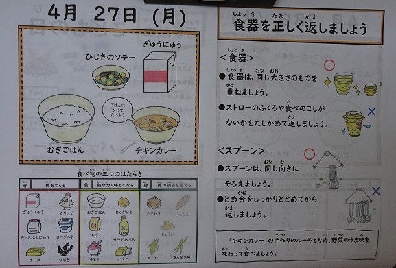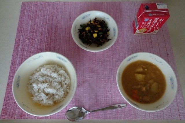 今日は、子どもたちの大好きな「カレー」の日です。やわらかい鶏肉がたくさん入った「チキンカレー」でした。給食のカレーは、ピリッとスパイシーなカレーの魅力と、子どもたちにも食べやすいまろやかさが一緒になっています。1年生から6年生までが「おいしい!」と思えるのが魅力の給食のカレーを味わっておいしくいただきました。