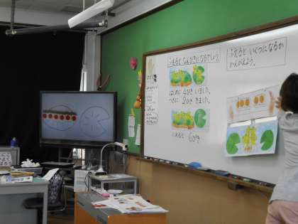 算数の学習です。数図ブロックを操作させながら,考えていきました。1年生の算数の学習も少しずつ難しくなってきていますが,一つ一つていねいに考えてマスターしていっています。