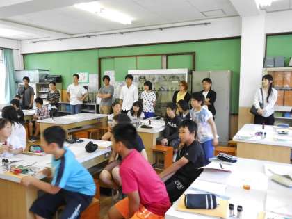 5・6年生は,理科室で理科の学習を参観していただきました。理科は,協力指導の先生と担任とで協力指導を進めています。