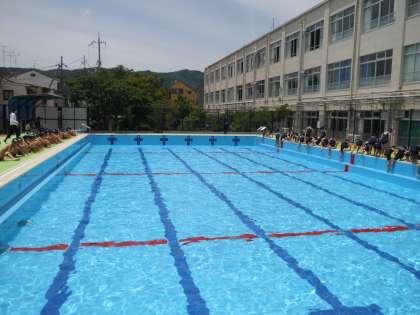 昨年度プールの経験のある2年生は,約束事をみんなで思い出しながら,水泳学習を進めていきました。新しくなったプールで,みんなとても楽しそうに活動していました。