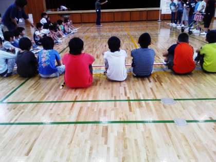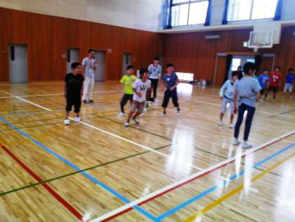 近隣の4校のお友だちが集まって、今年度初めて一緒に活動しています。自己紹介をしてドッチビーなどのゲームをしています。