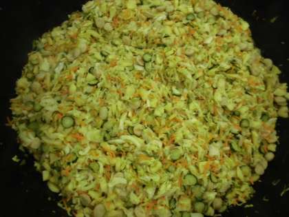 『ソーセージと野菜のいためナムル』は、じゃがいもとチキンフランクフルトを素揚げして、人参・蒸したキャベツ・きゅうりを炒めたところへ加えて炒め、砂糖・醤油・酢で味付けして、すり胡麻を加えて仕上げました。「きゅうり」は、夏が旬の野菜です。水分を多く含んでいるので、暑い夏に体温を下げる働きがあります。