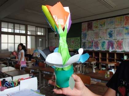 と,朝一番で女の子が手作りのお花と鉢植えを手渡してくれました。なかなかしっかりとした作りで,花と鉢が分離したりします。教室にかざって癒しにしたいと思います。