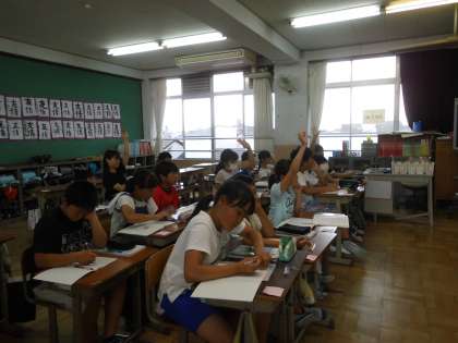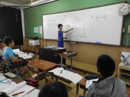 算数では少人数に分かれて学習してきましたが,今日は単元のまとめの練習問題に取り組みました。一つ一つ問題の意味を考えながら,みんなで確かめていきました。