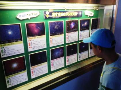 プラネタリウムから出てきました。星雲の展示にくぎ付けです。