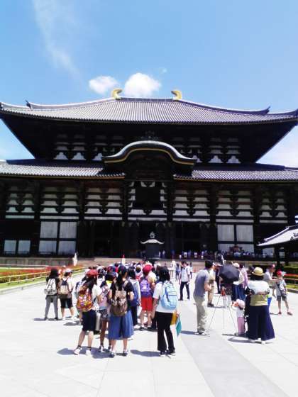 いよいよ、大仏殿見学です。やはり、写真で見るのと実物を見るのとでは迫力が違います。並んで柱くぐりもしました。
