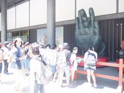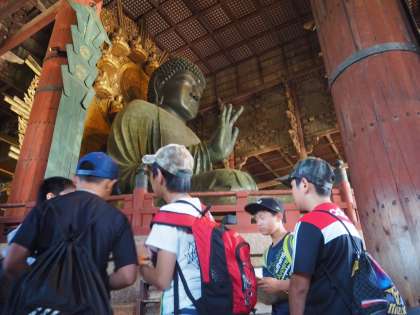 東大寺の大仏を見てきました。予想以上の大きさに子どもたちはビックリしていました。「大仏のあれって何なんだろ?」「この装飾にはどんな意味があるのかな?」など興味津々でした。