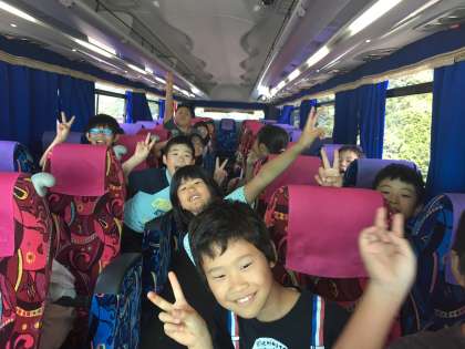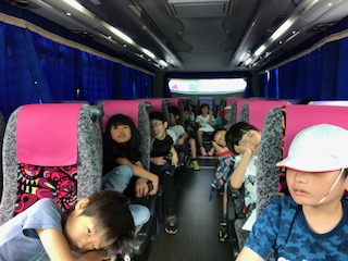 バスの中の様子です。1号車,2号車,それぞれに様子は対称的なようです。