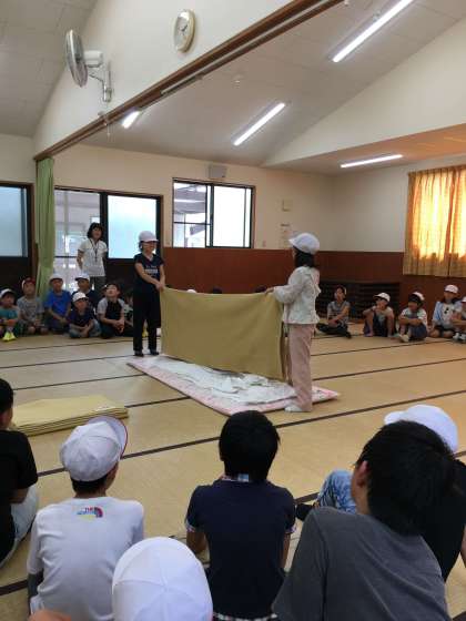 シーツのたたみ方を教えてもらいました。友だちと協力して,毎回,ていねいにたたみます。