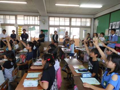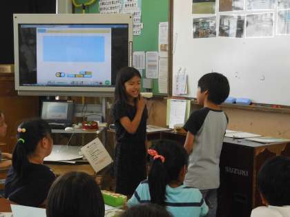 5年生はとても生き生きと活動していました。チャンツを歌ったり,友だちとのコミュニケーションを楽しんだりと,とても充実した外国語活動の時間となりました。