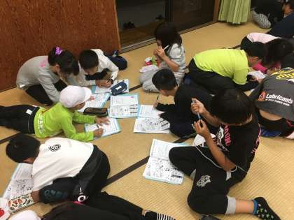 キャンプファイヤーの後,みんなで一日を振り返りです。今日も本当に充実した一日でした。