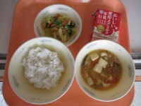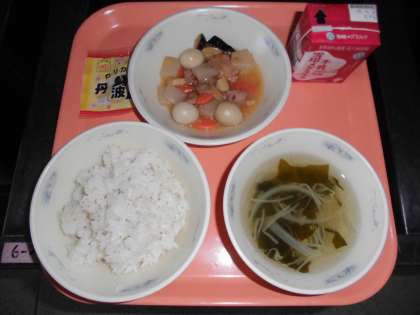 麦ごはん・牛乳・プリプリ中華いため・わかめスープ・黒大豆