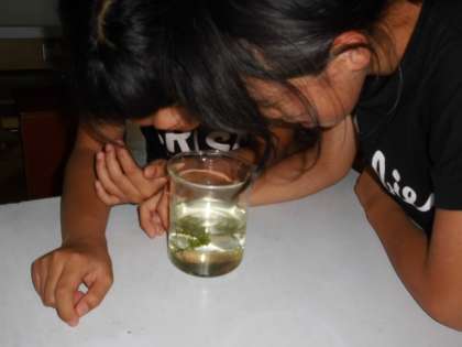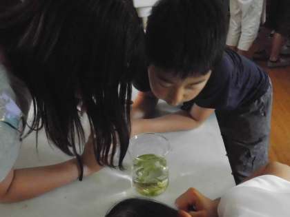 休み時間,5年生が理科室に集まってきました。理科の授業の流れからか,集まって水草やメダカを観察しています。先日はメダカのたまごを発見した5年生たち。今日はたまごからかえったメダカの赤ちゃんを見つけてみんなで大喜びしていました。