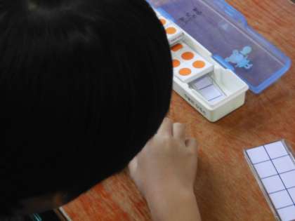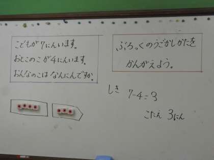 算数は,数図ブロックを操作して考えていきます。ただたんに計算ができるだけではなくて,どう考えているのかをイメージできるように,数図ブロックの操作も大事にしながら学習をしています。