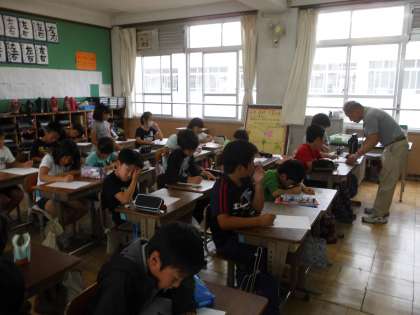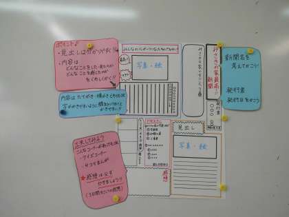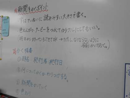 みさきの家から帰ってきた4年生。国語の「新聞を作ろう」の学習で,みさきの家の思い出を記事にしていきます。みんなの思いのこもった新聞,また読ませてほしいです。