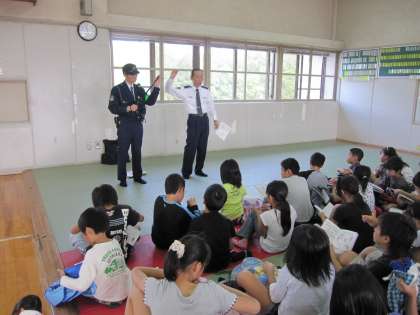 社会科「警察署の仕事」の学習で,右京警察署に行ってきました。警察官の持ち物を見せてもらいました。興味津々でした。最後には,何と白バイにも1人ずつ乗せてもらい大喜びでした。疑問に思っていたことも解決することができたようです。右京警察の方々,ありがとうございました。
