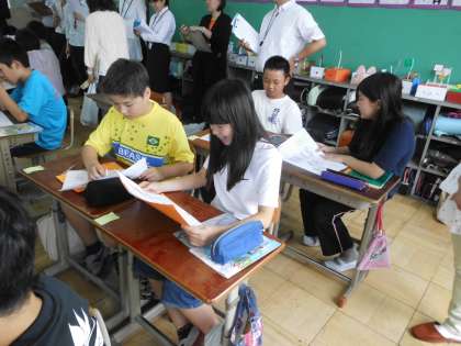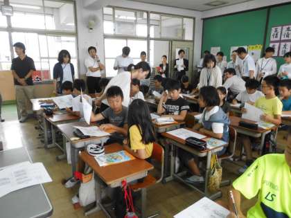 6年生は,外国語活動の時間を公開しました。中学校で学習する英語科と,どのように系統立てて学習していけばいいのか,小学校と中学校の先生で話し合いました。