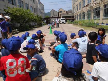 炎天下のもと,企業の方がみんなに帽子を貸し出してくれました。その帽子はなんとファン付き。ソーラーの力でファンが回り,風を送ってくれる仕組みになっています。なかなかに考えられた素敵な帽子ですね。