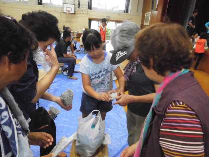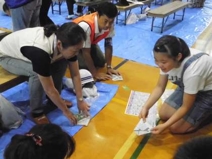 また,発表の後には,新聞紙で作るお皿やコップの折り方を,地域の方々に教えてまわりました。いざという時は,子ども大人関係なく,地域のみんなで協力していかないといけないことが活動を通して実感できました。
