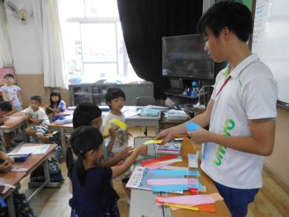 地域の方にお世話になり,大きな笹が届きました。1・2年生のみんなには短冊に願い事を書いてもらったり,飾り付けをしてもらったりします。みんな,どんな願い事を書くのでしょう。