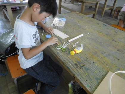 図工クラブは,各自で作りたいものを作ります。製作計画を立て,材料を準備して各自で作っていきます。思い描く完成図はそれぞれ持っているようで,みんな黙々と取り組んでいました。