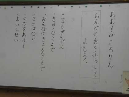 国語では,音読をお互いに発表して聞きあいました。音読のお話は「おむすびころりん」。どのように音読したらいいか,お互いの音読を聞きながら考えました。